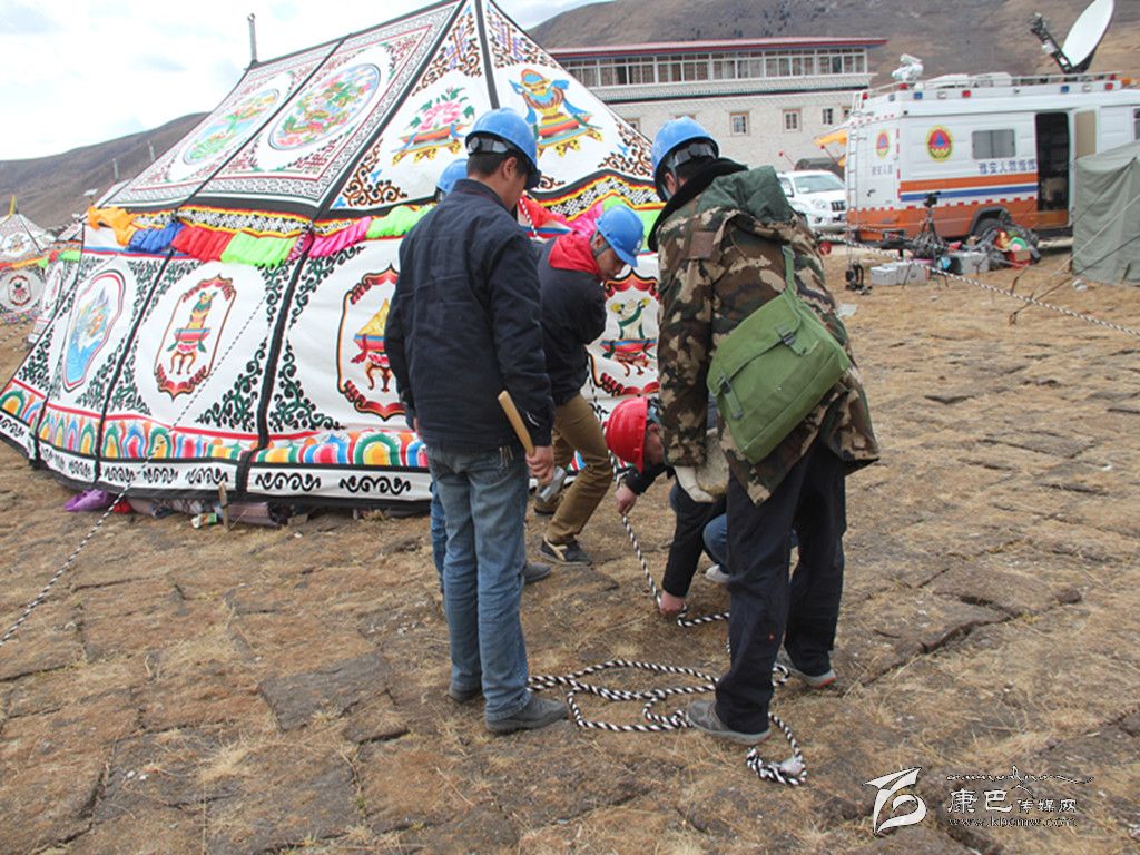 11月23日,天蒙蒙亮。為爭取更多的搶險救災時間,在塔公鎮(zhèn)木雅祖慶小學空地上搭建的州公司指揮部帳篷內,明志強、劉友志對震后第一天的工作做了安排和部署。