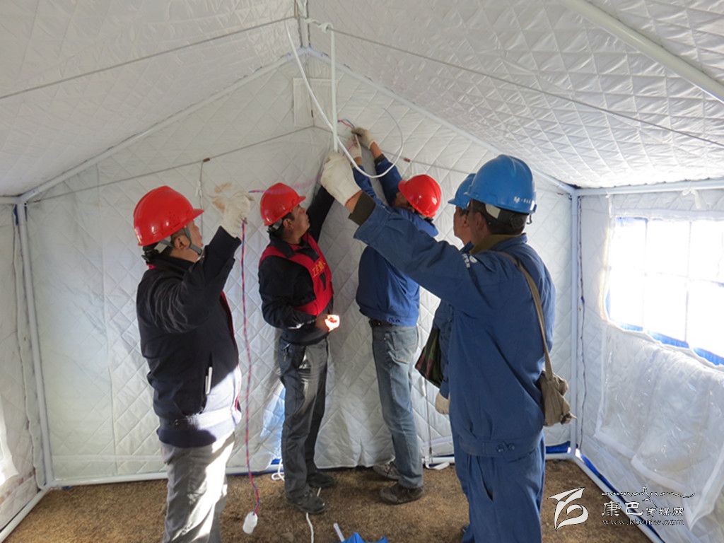 奪拉二村有4個變壓器臺區(qū),其中2個臺區(qū)為人員較多的木雅祖慶學校,地震使學校住宿樓變?yōu)槲7?,全校?000名學生轉移至學校空地上的安置點。為了讓安置點內的受災師生和應急指揮中心盡快用上電,黨員突擊搶險小分隊不僅要在安置點迅速安裝應急照明設施,同時還要從圍墻和學校食堂的樓頂上重新布放近3段2公里長的臨時電源線。學校圍墻因地震而搖搖欲墜,稍微用點力,墻、磚塊或水泥就會掉下來,面臨這一難題,公司黨總支沉著應對,迅速組織塔公供電所與新都橋供電所的黨員干部趕往震中,同時安排其余供電所的黨員干部迅速增援。先期到達的救援人員在余震不斷發(fā)生的情況下,對受損供電設備及線路進行了緊急處理;在后期人員趕到后,公司黨總支迅速研究制定工作方案,科學分工:第一組黨員突擊搶險隊負責隱患排查,第二組黨員突擊搶險隊負責電線布放,第三組黨員突擊搶險隊負責救災帳篷的照明安裝。在三個小組隊員的共同努力下,用近三個小時的時間就解決了應急指揮中心、醫(yī)療隊和臨時安置點的照明安裝這一難題。