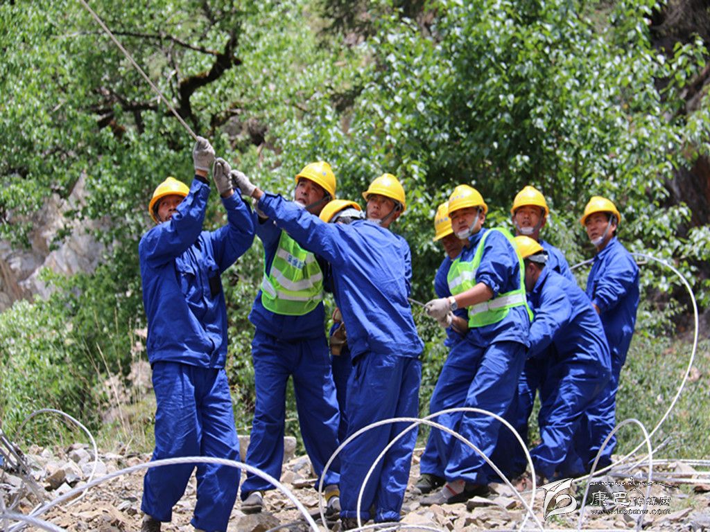 “辛苦”二字同樣印在工程管理者的工作中。手握對講機(jī)、身穿工裝的工程項(xiàng)目負(fù)責(zé)人龍森,此刻正頂著烈日在工地對一位工人叮囑施工事項(xiàng)。龍森是甘孜電力建設(shè)有限公司的工程技術(shù)人員,他對工程管理非常嚴(yán)格,如果工程進(jìn)度稍慢點(diǎn),他就會焦急萬分。可每每看見工人們頂著烈日、冒著風(fēng)雨加班加點(diǎn)趕工程進(jìn)度時(shí),龍森的心里也特別不是滋味。對這項(xiàng)工程的不易龍森深有體會。架桿初期,有些路段山坡土質(zhì)松軟,一遇到下雨就容易滑坡塌方,為了不影響工程進(jìn)度,龍森和工友們常常要一邊做“修路工”的工作一邊做“架桿工”的工作。龍森說:“最苦的是,這里有些路段車輛根本無法進(jìn)入,一根電桿重1.2噸,要靠十多名工人用繩索和木頭抬進(jìn)工地。德差鄉(xiāng)距離縣上有170多公里,單程就要4小時(shí),工程緊的時(shí)候一周要往返縣上兩三趟。還記得有一次車胎在海拔近5000米的呷布科山上爆了,山上手機(jī)沒有信號,得不到救援,餓了我們就在山上吃點(diǎn)自帶的干糧,等了近半天才等到一位騎摩托車的老鄉(xiāng)路過,回到休息地的時(shí)候已經(jīng)是半夜兩點(diǎn)多了。”說到這里,龍森無奈地?fù)u了搖頭。世上無難事,只怕有心人。龍森說,這段路線的電桿已經(jīng)全部立起來了,現(xiàn)在只剩下架線的工作。一定要搶在月底之前為這兩個(gè)村通上電。