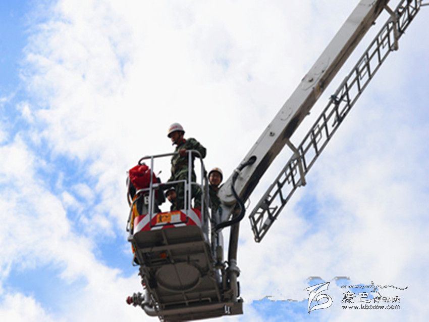 體驗登高。DG-32C登高平臺消防車性能測試和維護保養(yǎng)工作完成后,在甘孜消防支隊司令部參謀長劉乾德和一名登高車駕駛員帶領(lǐng)下筆者親身體驗了一次登高作業(yè)。按照操作規(guī)程,戴好防護頭盔,扎上綁有安全繩的防護腰帶,登高平臺臂正式啟動。駕駛員操作技術(shù)十分嫻熟,40秒后,登高平臺穩(wěn)穩(wěn)的停在了28米的高空。站在平臺上俯瞰著下方,一陣清風刮過,平臺出現(xiàn)了輕微搖晃,當時筆者十分緊張,手掌緊緊抓住了平臺上的防護欄。“高空作業(yè)出現(xiàn)這種情況屬于正常現(xiàn)象,心里一定要平靜,要相信消防員的專業(yè)技術(shù),也要相信消防裝備的安全系數(shù)”駕駛員對筆者說道。隨即,在駕駛員的操作下,平臺緩緩下降至地面,筆者頓時松了口氣,并向操作登高平臺臂的駕駛員表示剛才感覺十分驚險。當?shù)弥{駛員對DG-32C登高平臺消防車經(jīng)過專業(yè)的技術(shù)培訓,并具有3年多的駕駛及操作經(jīng)驗時,筆者頓時心生敬畏。