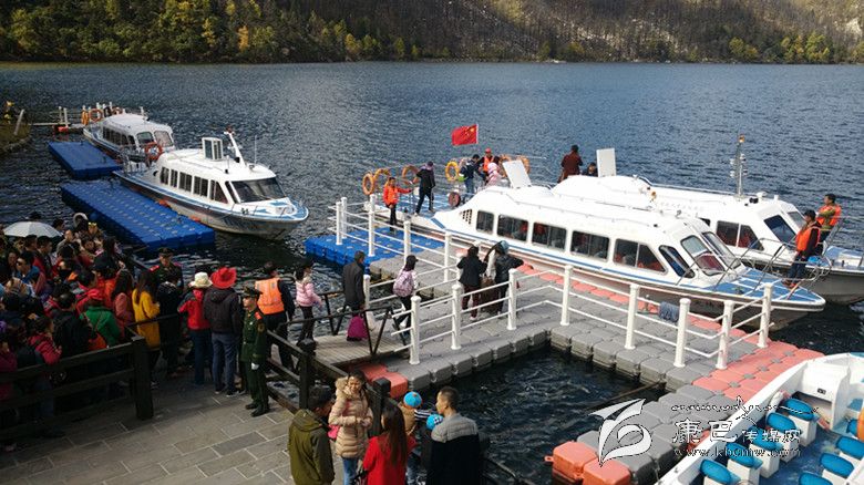 “十一”黃金周期間,康定市木格措景區(qū),游客正在有序排隊(duì)等待乘船。