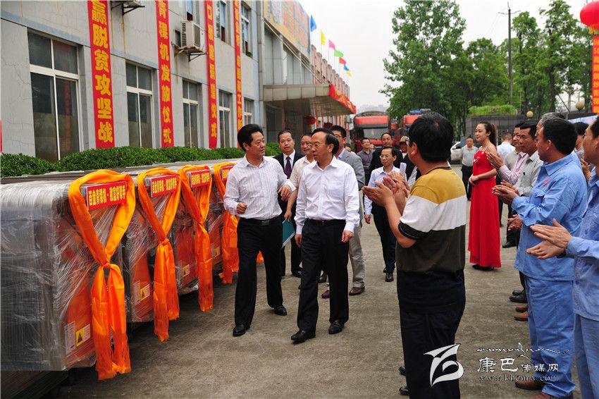 成都市委常委謝瑞武、州委常委、農(nóng)工委主任楊凱在啟運(yùn)儀式現(xiàn)場參觀捐贈產(chǎn)品。