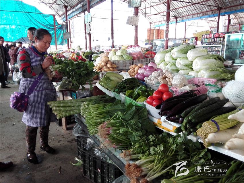 譚曉蓉正在農(nóng)貿(mào)市場整理自家產(chǎn)的蔬菜。