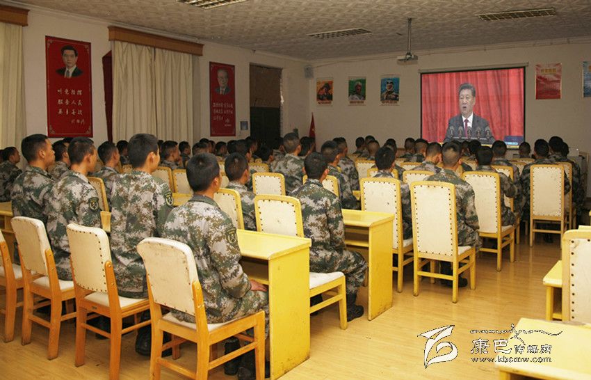 甘孜軍分區(qū)官兵收看慶祝建黨95周年大會(huì)實(shí)況直播。