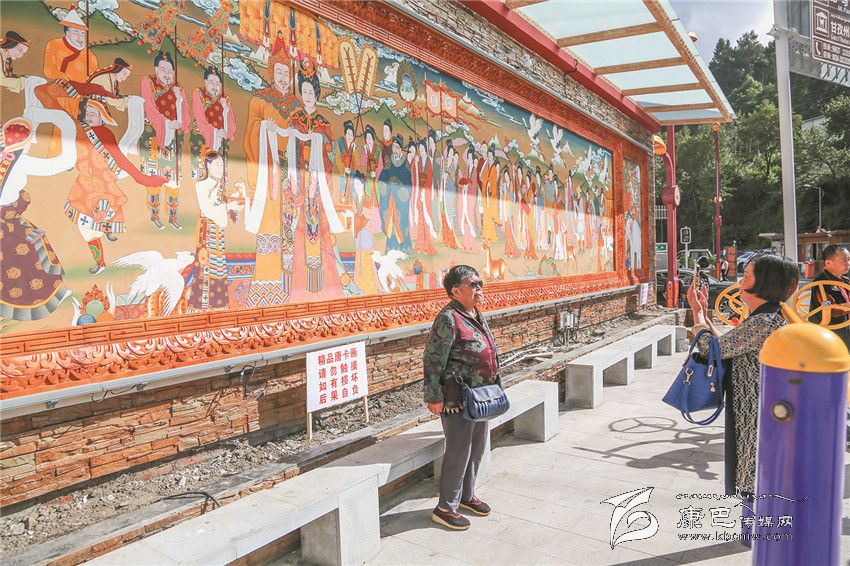 本網(wǎng)訊(孫學花/文 記者 陳楊/圖)8月3日,大型唐卡——文成公主進藏圖在康定市公主橋全民健身場旁的文化墻上亮相,引來眾多市民和游客觀看,受到一致好評。