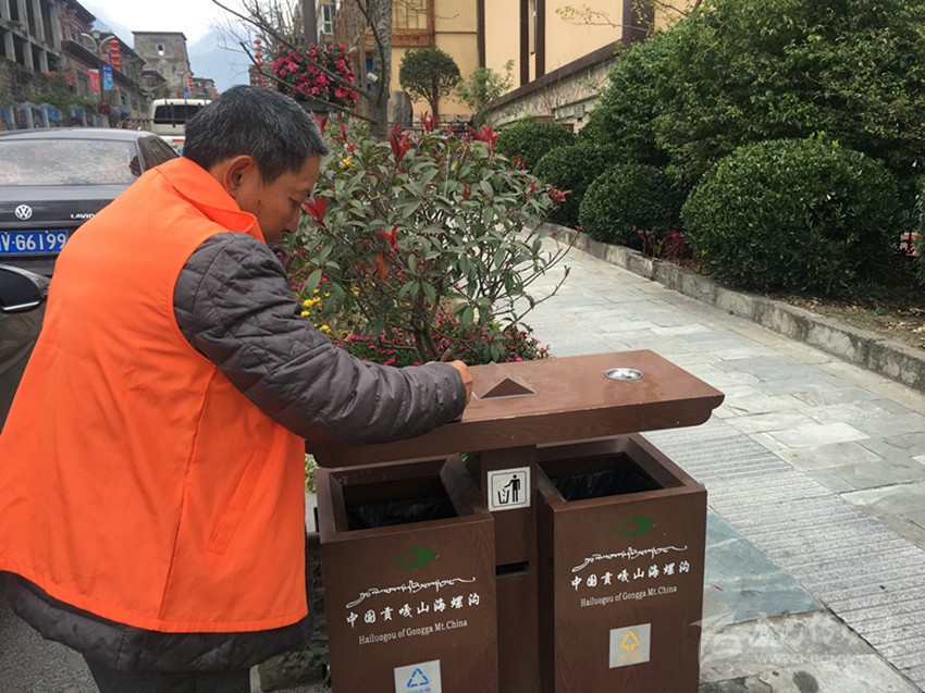 “走,我們到街上逛逛,看看海螺溝的變化。”在海螺溝景區(qū)管理局政治部主任龔自毅的陪同下記者來到磨西鎮(zhèn)街上。邊走邊看,記者看見龔自毅只要發(fā)現(xiàn)街上有煙頭或垃圾時,就會彎腰把這些垃圾撿起來,扔進垃圾桶。