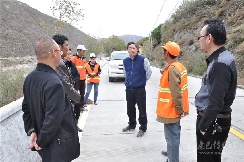 州公路局黨委書記、局長(zhǎng)趙景紅(中)在基層調(diào)研。