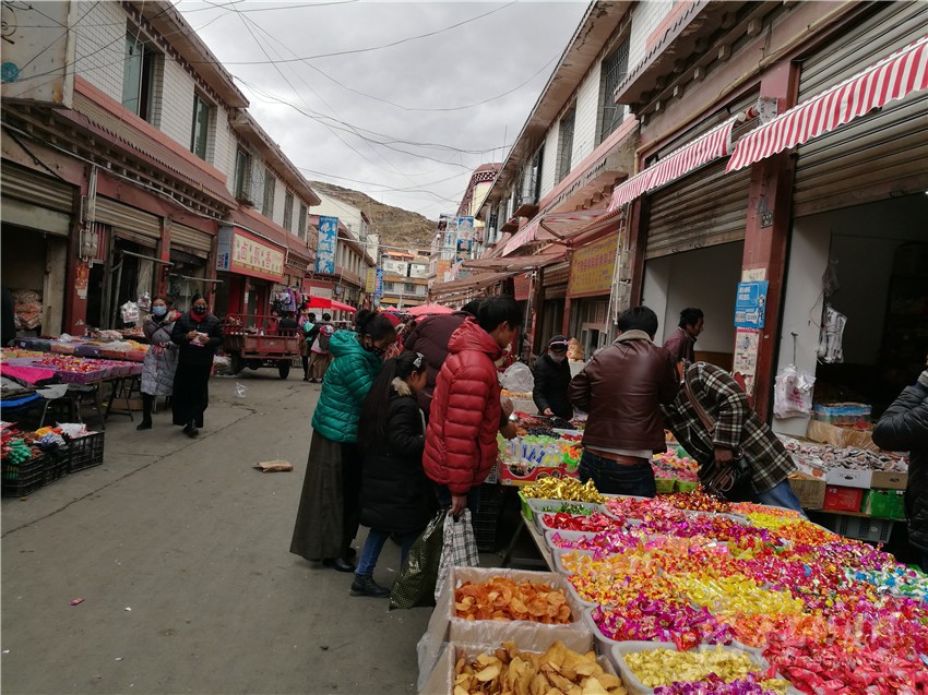 筆者在該縣副食店、超市看到,商家的各種促銷優(yōu)惠活動(dòng),吸引了不少農(nóng)牧民群眾,前來(lái)購(gòu)買年貨的群眾熙熙攘攘。各種涼鹵食品店的生意也相當(dāng)火爆?!翱爝^(guò)年了,吃的、用的和穿的都得買點(diǎn),過(guò)完藏歷年,就要忙春耕生產(chǎn)了。”手里拎著大包小包年貨的降措滿臉喜悅地說(shuō)。