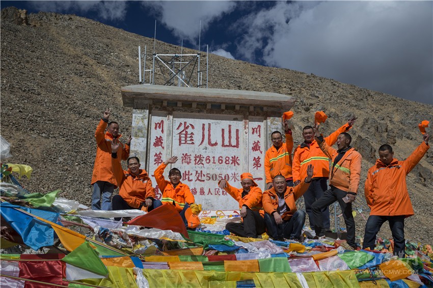 該做的活路做完了,9個人再一次來到山埡口那個立有標牌的地方,為他們每一個人拍下了一張紀念照,他們說雀兒山將不會再有道班房了,這張照片就是他們永遠的紀念。說完他們從懷中掏出才從山下買來的龍達,這是藏族人民驅災祈福的信物,迎著呼呼的大風,揚手拋上了藍天。不知是誰發(fā)出了哭聲,于是9個人都哭了,9個漢子的哭聲在5050米的高度揮撒開來是何等的豪邁!