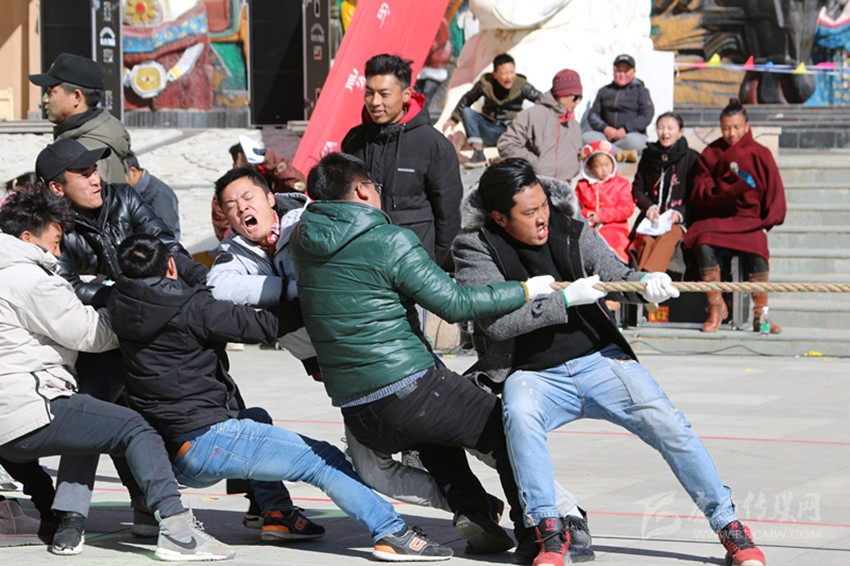 趣味比賽將干部職工和高城鎮(zhèn)農牧民群眾分成若干個小組進行比賽,“翻山越嶺 ”游戲,男生普遍輕松應對,女生由于沒有助跑,一直栽在“山坡上”翻不過去,引得現(xiàn)場觀眾大笑,最后在現(xiàn)場觀眾的齊聲加油下終于翻過。跳繩、袋鼠跳,參賽選手較勁比拼。“勇敢者”游戲,組員需先轉10個呼啦圈、踢毽10下、吹爆一個氣球、跳繩10下、喝完一瓶330毫升的礦泉水進行接力,現(xiàn)場氣氛熱烈,觀眾的加油吶喊聲此起彼伏。“坦克大戰(zhàn)”游戲考驗了大家協(xié)調配合能力,把觀眾的心都提到嗓子眼。最引人注目的拔河比賽開始了,每個隊都帶著勢在必得的勇氣上場,結果年輕小伙們卻輸給了高城鎮(zhèn)農牧民代表隊。