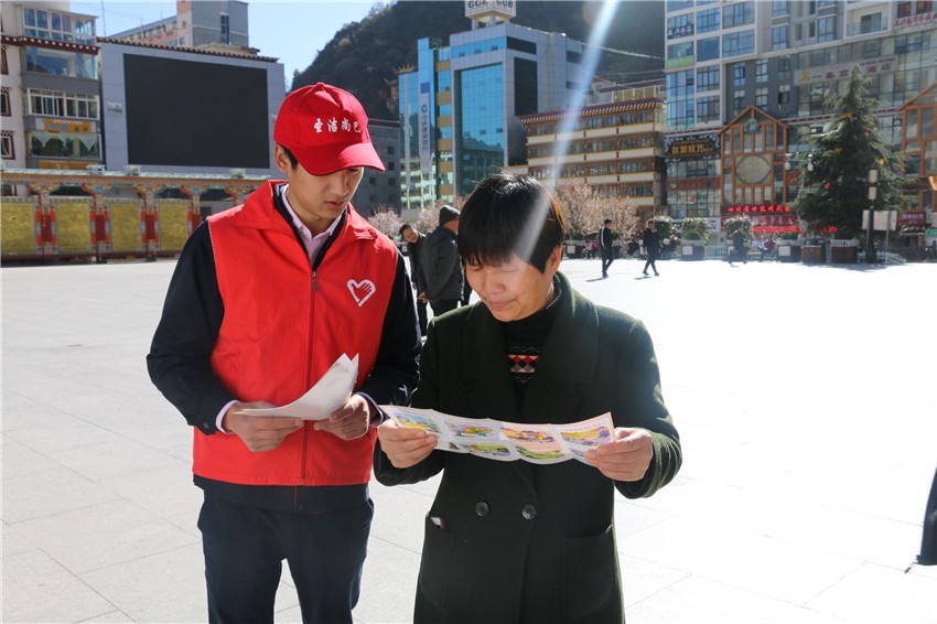 當(dāng)天陽(yáng)光明媚,高寒的康定也有了春天的氣息,“圣潔尚巴”服務(wù)隊(duì)的四名隊(duì)員身穿整齊的隊(duì)服來(lái)到情歌廣場(chǎng),宣傳文明祭祀,預(yù)防山火。廣場(chǎng)中間一塊大大的簽名墻吸引了市民的注意,墻上寫著“文明祭祀 綠色清明倡議書”幾個(gè)大字,文明祭祀、科學(xué)祭祀、環(huán)保祭祀、節(jié)儉祭祀、安全祭祀幾條倡議中為大家提供了多種多樣的祭祀方式,獻(xiàn)一束花、植一棵樹(shù)、寫一封信、扎一根黃絲帶……參與活動(dòng)的市民紛紛在墻上鄭重地簽下了自己的名字,“我覺(jué)得這個(gè)活動(dòng)很好,祭奠的方式有很多,不一定非要燒紙錢、放鞭炮?!笔忻窭钸B國(guó)說(shuō)道。