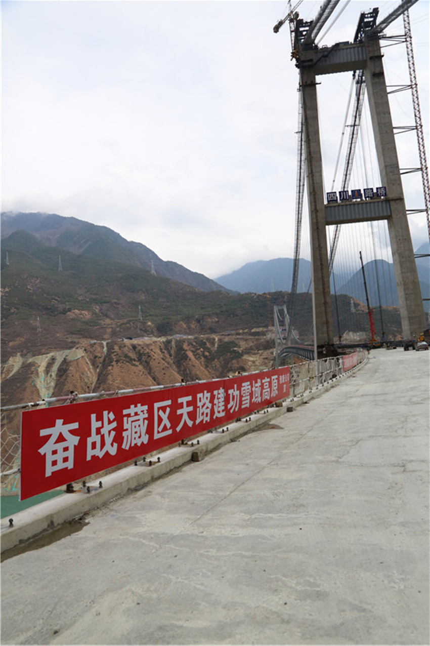 在瀘定橋上游不到5公里的地方,單跨達(dá)1100米的興康特大橋正在修建。作為高海拔、高地震烈度山區(qū)和復(fù)雜風(fēng)場環(huán)境下世界第一超大跨徑鋼桁梁懸索橋,以其極高的施工難度,成為名副其實(shí)的“川藏第一橋”。