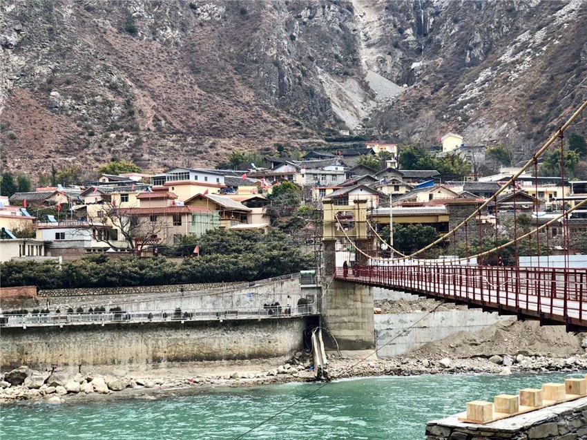 來到時(shí)濟(jì)鄉(xiāng),鐵索橋?qū)Π毒褪侨艏?,流淌的大渡河水從橋下穿過,若吉村內(nèi)正在進(jìn)行民居風(fēng)貌升級(jí)改造,一些改造的民居外形已初顯。