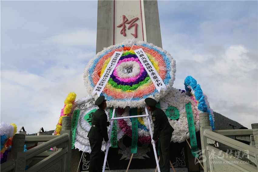 縣“四大家”及色達(dá)五明佛學(xué)院、喇榮寺管委會(huì)、縣人武部等相關(guān)單位敬獻(xiàn)的大型花籃,由干部職工穩(wěn)穩(wěn)抬起,緩步走向烈士紀(jì)念碑,擺放在紀(jì)念碑基座上。