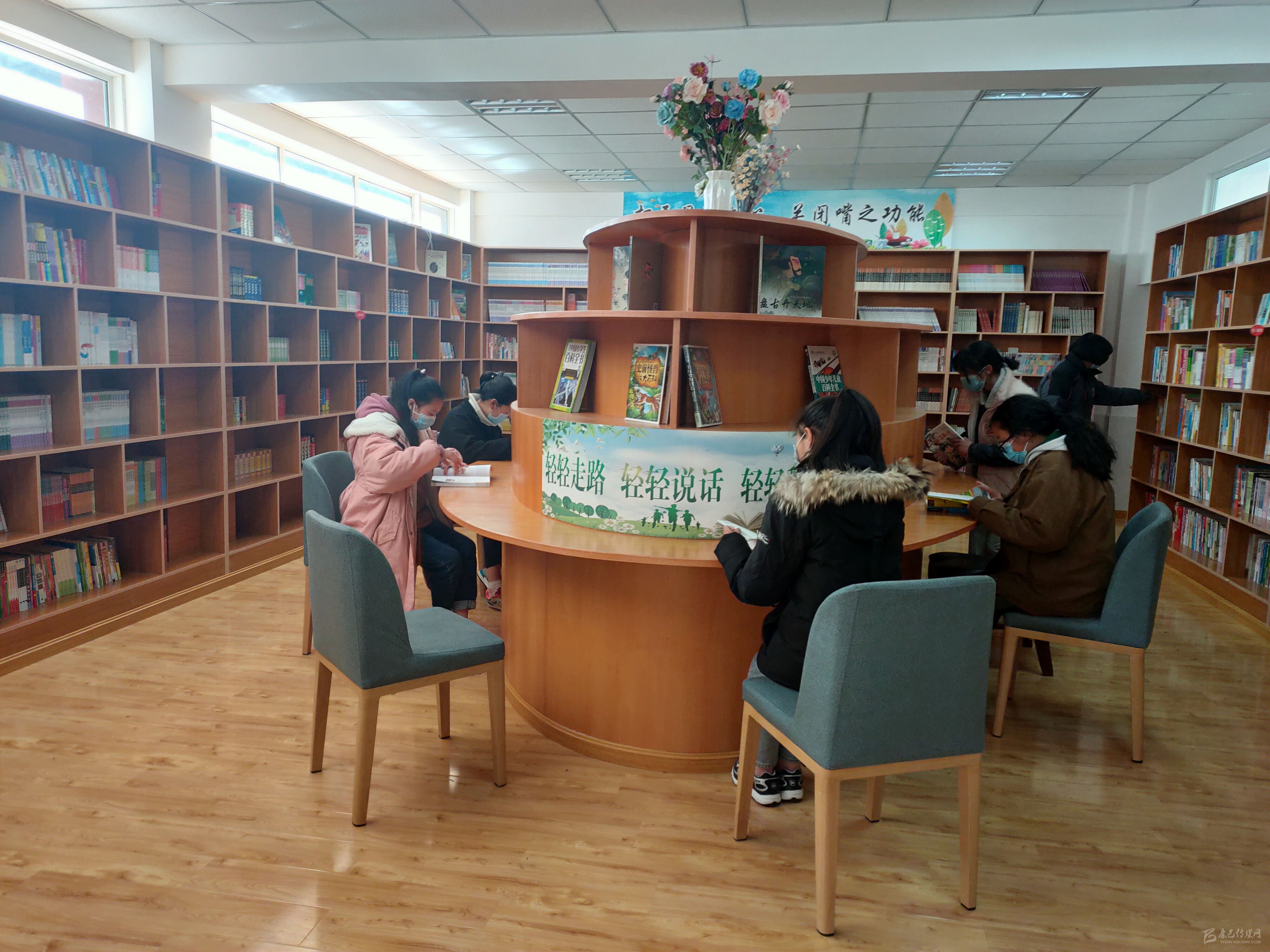 孩子們在圖書室看書。