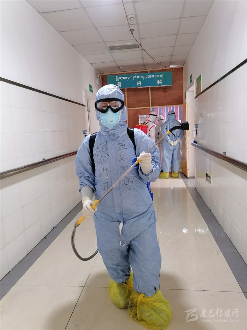 除了日常護(hù)理,根呷她姆的還要負(fù)責(zé)每日病房的消毒工作、垃圾清理以及清潔衛(wèi)生工作?!跋竟ぷ鞲裢庵匾?,必須做到不漏一個死角?!备人窂?qiáng)忍著84消毒液刺激引起的嗆咳及生活垃圾引起的惡心發(fā)嘔,一絲不茍,任勞任怨,做好每一天的消殺清潔工作,讓病毒無處遁形。在同事面前她是護(hù)士長、家長,在病人面前,她是護(hù)士、護(hù)工、清潔工、家屬、心理老師……根呷她姆每天在各種角色間轉(zhuǎn)換自如,不怕臟、不怕累、不怕苦,拼盡全力只為打贏這場沒用硝煙的戰(zhàn)爭!