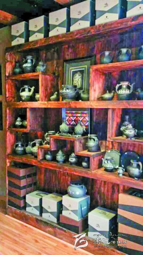 專賣店位于康定情歌廣場右側(cè)。店面古樸簡潔,店鋪內(nèi),沒有華麗的裝飾,沒有鮮亮的色彩,一件件或黑色、或土黃色的土陶產(chǎn)品靜靜地擺放在木質(zhì)陳列架上。產(chǎn)品有傳統(tǒng)的器形,如雙耳罐、香爐、茶壺等,又有新研發(fā)出的器形,如茶具、餐具、筆架等等。產(chǎn)品在將傳統(tǒng)工藝與現(xiàn)代工藝巧妙結(jié)合的基礎(chǔ)上,還融入了藏族傳統(tǒng)文化,民俗文化、宗教文化、吉祥文化等元素,以其拙樸典雅的造型向人們訴說著“阿西土陶”悠久的文化內(nèi)涵與歷史淵源。