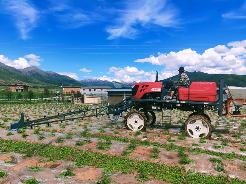澤仁措務(wù)工之處是位于他家附近的白玉縣贈科現(xiàn)代農(nóng)業(yè)產(chǎn)業(yè)園區(qū)的萬畝核心種植基地,園區(qū)內(nèi)推廣流轉(zhuǎn)種植了藏菊花、藜麥、高原有機(jī)蔬菜、中藏藥材等共4500畝,園區(qū)主打種植藜麥、菊花等農(nóng)特產(chǎn)品,目前已實(shí)現(xiàn)規(guī)模化、連片化、機(jī)械化種植。種植基地為11個建檔立卡戶提供了長期固定崗位,園區(qū)建設(shè)通過土地流轉(zhuǎn)、村民就近務(wù)工等渠道,促進(jìn)助農(nóng)增收多樣化,已兌現(xiàn)勞務(wù)費(fèi)180余萬元。同時,贈科鄉(xiāng)的依里村、上比沙村、下比沙村通過土地流轉(zhuǎn),兩年多來憑借土地流轉(zhuǎn)獲得280余萬元的收益。