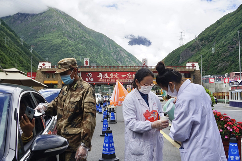 地震又遇疫情。大量救援隊(duì)進(jìn)入災(zāi)區(qū),加大了當(dāng)?shù)匾咔榉揽氐膲毫?。為減輕當(dāng)?shù)胤酪邏毫Γ?月6日,州藏醫(yī)院再次抽派8名醫(yī)務(wù)人員組成兩支核酸采樣隊(duì),奔赴瀘定縣得妥鎮(zhèn)火線(xiàn)支援疫情防控工作。核酸采樣隊(duì)到達(dá)目的地后,在應(yīng)急指揮部的安排下,迅速投入到了緊張有序的采樣工作中。截止撤離時(shí),共為當(dāng)?shù)亻_(kāi)展了1萬(wàn)余人次的核酸采樣。