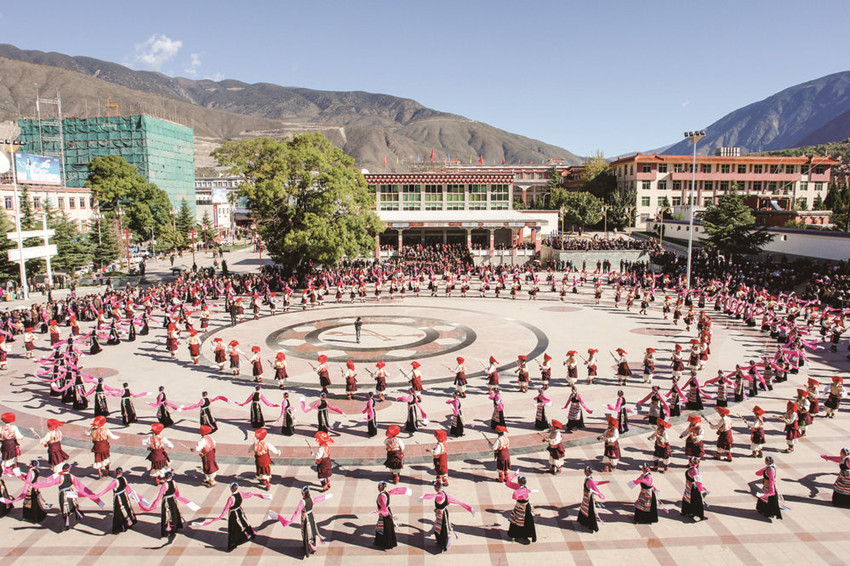 甘孜州有藏、漢、彝、羌、納西、回等20多個(gè)民族,其中藏族人口占81.5%。從古至今,甘孜大地各族群眾交往交流交融,各族群眾“同唱一首歌、同跳一支舞、同吃一桌飯”成為習(xí)以為常的生活場(chǎng)景,人心凝聚、團(tuán)結(jié)奮進(jìn)的精神紐帶更加牢固。