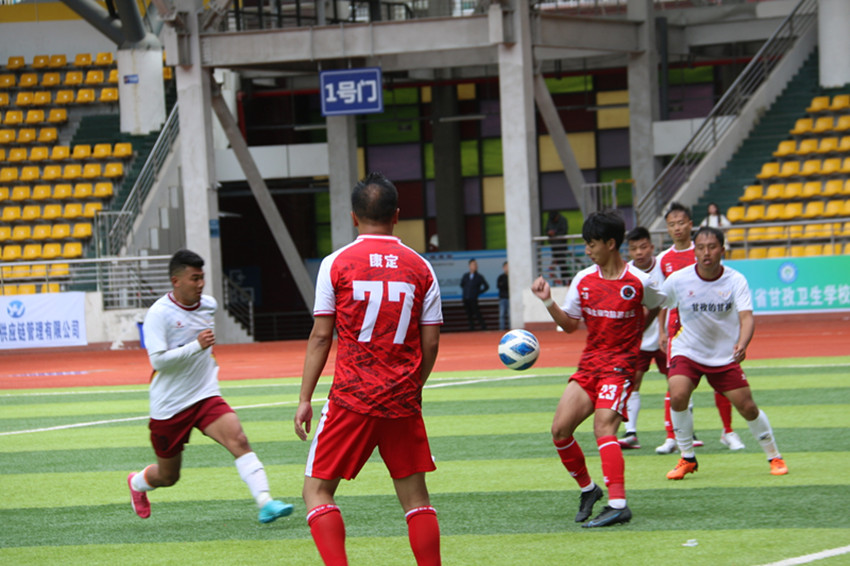 在下午的總決賽中,球場的氣氛被推向了最高潮,雖然小雨淅瀝,但球員和球迷的氣氛依舊不減,康定隊和甘孜隊都極力渴望突破重圍奪得桂冠,登上冠軍寶座。在上半場比賽中,雙方球員頑強(qiáng)拼搏,積極進(jìn)攻,嚴(yán)密防守,為本屆運動會足球賽的最后一場比賽全力以赴。在屢次界外球與定位球之后,裁判哨聲響起,上半場比賽結(jié)束,比分仍然定格在0:0。