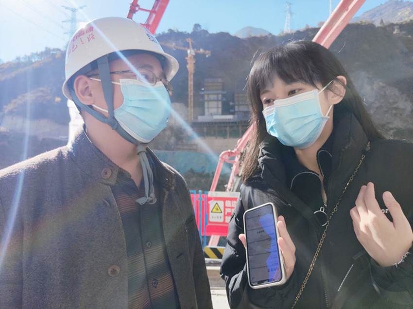 圖為記者馮麗娜在拍攝視頻。