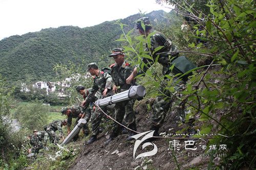 趕到災(zāi)區(qū),眼前已是一片狼藉,無情的泥漿已淹沒了大半個村莊。面對災(zāi)情,全體官兵來不及多想,立即運送救災(zāi)帳篷到達(dá)距事發(fā)現(xiàn)場約4公里外的國如村。前往國如村的山路崎嶇,汽車無法通行,且隨時可能再次發(fā)生滑坡和泥石流,官兵們不顧危險,肩扛手抬沿山上陡峭的小路進(jìn)行運送。途中還經(jīng)過一座僅一米寬的木板吊橋,此橋常年失修,走在上面左搖右晃,下面是湍急的河水,十分危險。想到受災(zāi)群眾急切的眼神,官兵們冒著危險,小心翼翼地通過了小橋。
