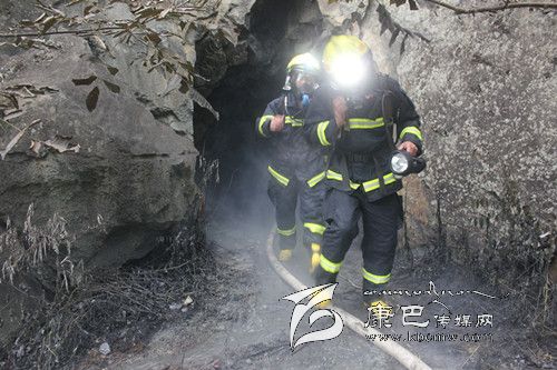 消防官兵在使用有毒氣體探測儀對現(xiàn)場氣體進行檢測后發(fā)現(xiàn),雖然煙氣刺鼻,但未檢測出有毒氣體。在使用排煙機對山洞進行持續(xù)排煙后,中隊派出兩名消防官兵佩戴空氣呼吸器和強光燈在水槍的掩護下進入山洞偵查煙氣源。因山洞內(nèi)煙霧大,溫度高,能見度低,第一批消防官兵未能找到煙氣源。在短暫準備后,第二批消防官兵攜帶相關器材進入山洞繼續(xù)尋找。在距離山洞口十幾米的地方,消防官兵發(fā)現(xiàn)了大量正在燃燒的電纜線,經(jīng)初步確定,大量白煙就是電纜線燃燒后產(chǎn)生的。因山洞長時間受高溫烘烤隨時可能倒塌,消防官兵在與當?shù)卣撠熑藚f(xié)商后對山洞洞口實施了封閉滅火。