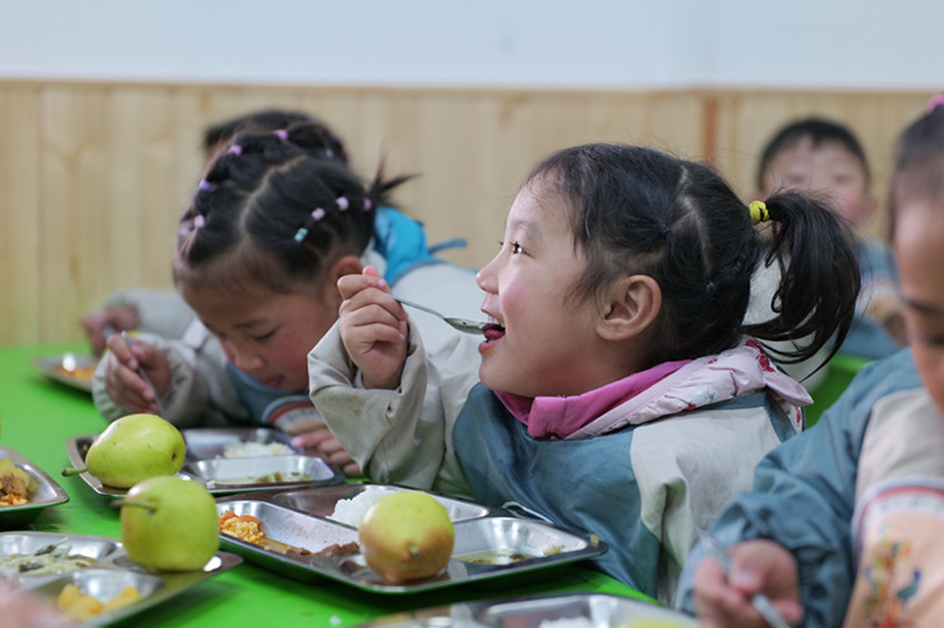 德格縣幼兒園學(xué)生正在就餐。