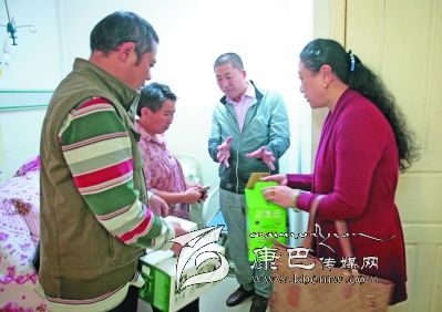 雖然大家都在獻(xiàn)愛心,但這點(diǎn)錢也顯得杯水車薪。結(jié)對認(rèn)親小分隊(duì)回到報(bào)社后,立即向報(bào)社黨委作了匯報(bào),第二天中午,報(bào)社派出人員代表黨委、編委會、結(jié)對支部和全體職工,到州人民醫(yī)院探望蘇國全,這才出現(xiàn)了本文開頭的一幕。在病房照顧蘇國全的妻子和女兒看見“親戚”單位來了人,眼里閃動著激動的淚光。“這幾天借來的錢都要用光了,如果停藥就會有危險(xiǎn)。”蘇國全的妻子饒大姐說。報(bào)社領(lǐng)導(dǎo)安慰她說,“不要急,我們大家一起想辦法。”并將全社職工捐贈的10000元現(xiàn)金交到她的手中。當(dāng)她從報(bào)社領(lǐng)導(dǎo)手中接過愛心款時(shí),母女倆的淚水奪眶而出,連聲感謝。