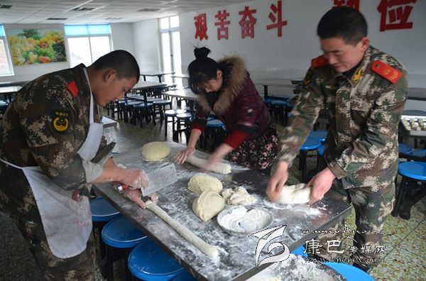 時值大暑季節(jié)的川西高原依然寒風凜冽,一抹朝陽灑在山頂積雪上,散發(fā)出黃白相間耀眼的光芒。此時,工化中隊廚房里鍋碗瓢盆開始演奏新一天的樂章,幾名炊事員忙來忙去,只見中隊長杜培峰的妻子李曉霞正蹲在門口幫著洗菜,“小杜跟我說中隊的炊事員最辛苦,讓這些小伙子炒菜做飯,真是難為他們了……”,四川妹子李曉霞用手擦了擦額頭的汗珠對筆者說。正說著,炊事班長跑過來一把端走李曉霞面前的菜盆:“嫂子,你這么早起來瞎忙活什么???你感冒還沒好呢,快回去休息吧!”
