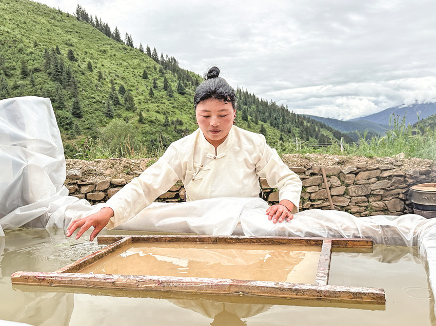 “我從15歲開始學習藏紙制作技藝,到現(xiàn)在已經(jīng)20年了……”