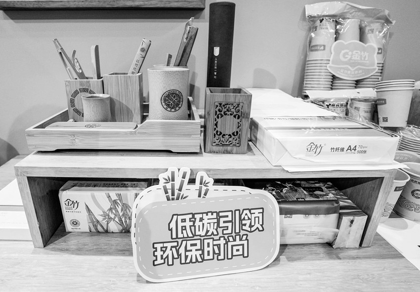 在環(huán)境服務(wù)專題展區(qū),安徽豐原集團(tuán)有限公司帶來(lái)了“小秸稈”也有“大用處”的展示,展臺(tái)上的餐盒、紙杯等都是由秸稈制作而成。