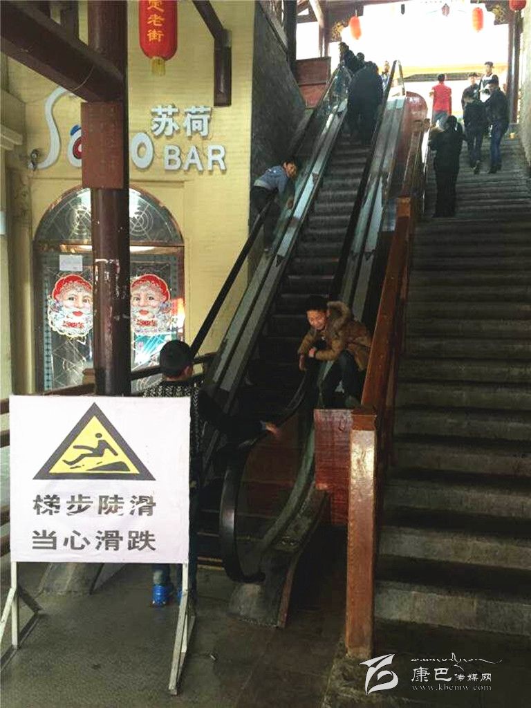 “唰,唰,唰”一群10歲出頭的孩子們從停運電梯的扶手上飛速滑下,這是記者在康定“溜溜城”商業(yè)步行街下方出入口處電梯看到的一幕??匆娪浾咴谂恼?,小學四年級的小亮(化名)絲毫沒有慌亂,嫻熟的翻越動作表明這里是他和朋友們的常來之地。記者目測電梯長度約有60米左右,上下落差較大,在電梯扶手上玩耍的孩子極易受傷。小亮和朋友們卻不以為然:“這個梯子好像游樂園里的激流勇進,好好耍哦!”孩子們完全忽略了潛在的危險。