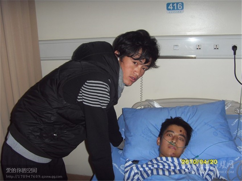 2010年4月14日,青海玉樹州發(fā)生大地震,隨著救援工作的有序推進,地震傷員被源源不斷地送往省人民醫(yī)院和華西醫(yī)院。由于醫(yī)患之間語言溝通障礙,醫(yī)院急需藏漢雙語志愿者,木彭措帶領(lǐng)學(xué)校20名志愿者趕往醫(yī)院做翻譯,幫助院方安撫災(zāi)民的情緒,與護士一道幫助患者洗臉洗腳?!盎颊哂袕娏业恼鸷罂謶中睦恚夤殴直┰?,經(jīng)常莫名其妙地給醫(yī)生護士和志愿者發(fā)火?!蹦九泶胝f,大家都很理解患者和家屬的心情,默默無聞地幫助患者?;颊呖释魂P(guān)心和理解,多給患者一個微笑,一個擁抱,和患者零距離接觸,患者才會接納你。除了完成學(xué)習(xí)任務(wù)以外,休息時間,木彭措和同學(xué)們都在醫(yī)院里度過,像患者家屬那樣,幫助素不相識的患者打開水、洗臉、洗腳、喂飯。