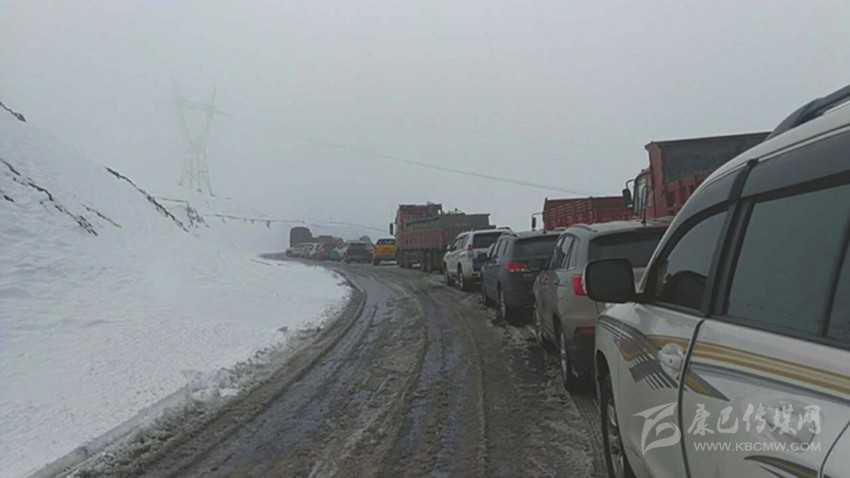 折多山上排起了堵車長龍。