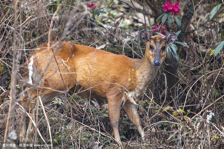 這一地區(qū)的有蹄類種類極其豐富,在后來的紅外相機(jī)監(jiān)測數(shù)據(jù)中發(fā)現(xiàn),在林區(qū)的四臺相機(jī)僅在一個(gè)月的時(shí)間里就拍到了6種有蹄類:水鹿、鬣羚、斑羚、毛冠鹿、馬麝、野豬。再加上親眼目睹的巖羊和白唇鹿,這已經(jīng)有8種有蹄類的存在。而根據(jù)林業(yè)局的走訪記錄,這一地區(qū)的有蹄類動物很可能達(dá)到10種或者更多。