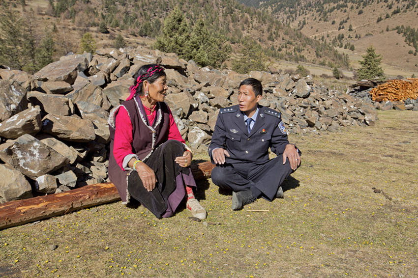 在設(shè)卡過程中,李降措逐一盤查經(jīng)過卡點的車輛和人員,一名村民舉報說,犯罪嫌疑人往塔公松林口方向逃竄了,并已經(jīng)上山。李降措迅即集結(jié)民警向嫌疑人逃竄方向追去,最終將嫌疑人鎖定在松林口附近的一座山上。