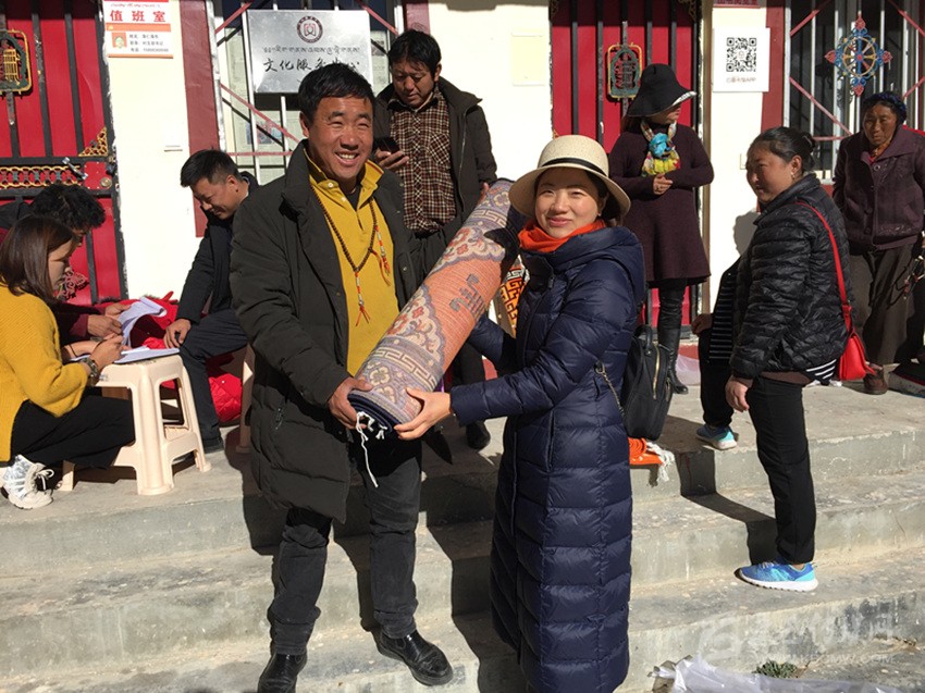 看著即將銷售一空的土豆,蓋玉鄉(xiāng)黨委書記白瑪降稱特意為援藏隊(duì)送來(lái)潔白的哈達(dá),表達(dá)感激之情。