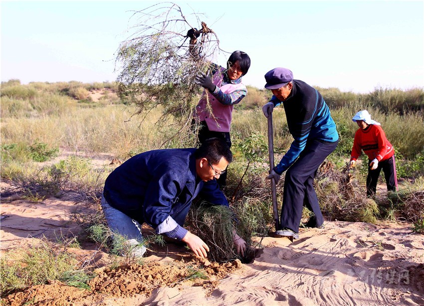 “后來(lái)我想開(kāi)了,我既然不懂,就求助于懂的人?!睆垜?yīng)龍說(shuō)。他走訪了許多高校和科研院所,拜訪過(guò)許多專業(yè)人士。一位中科院專家告訴張應(yīng)龍,在沙漠里種樹(shù)不能盲目,一定要先把水保住,這樣土壤中的養(yǎng)分才不會(huì)流失,種樹(shù)的成活率才能高。同時(shí)還要種混交林,喬灌結(jié)合。這讓張應(yīng)龍茅塞頓開(kāi)。