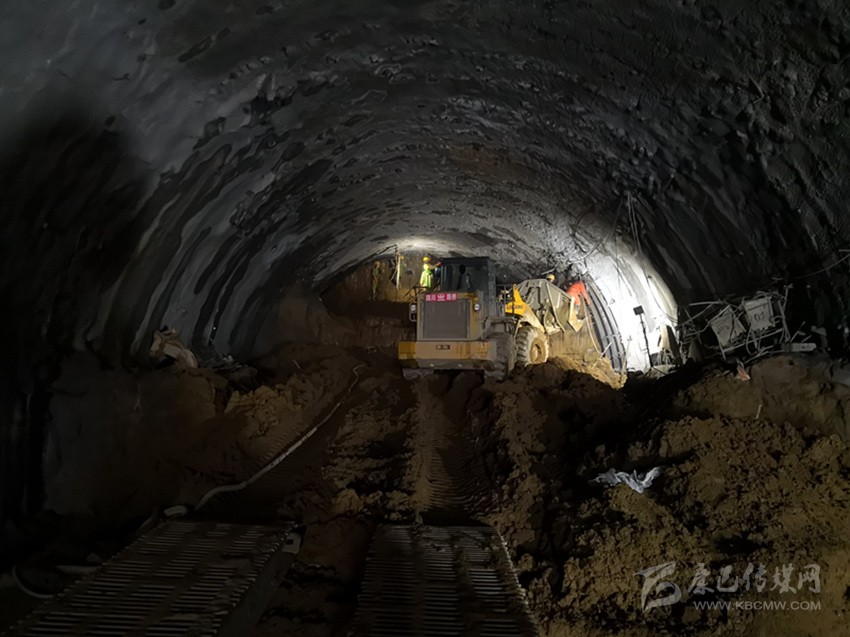 4月9日,記者走進(jìn)TJ2標(biāo)段已開挖成型的主洞,見到進(jìn)洞100米左右,工人們正在綁扎支護(hù)用的鋼筋。再前進(jìn)200米左右,一臺二襯臺車正在加固初步成形的隧頂。走上約20米的移動棧橋,就到了隧洞底端的掌子面,一臺挖掘機(jī)正在隆隆作業(yè),很快就堆起一座泥石小山。據(jù)工作人員介紹,由于土質(zhì)松散,從安全和質(zhì)量方發(fā),每天進(jìn)行兩個循環(huán)開挖,一天能完成2米左右的進(jìn)度。