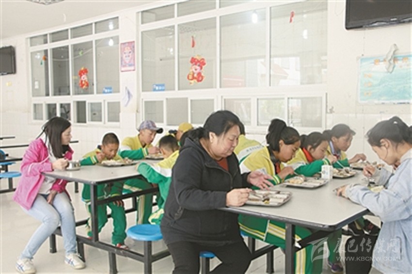 唐關(guān)蓉、馮秀玲兩位老師和學生一起用餐。