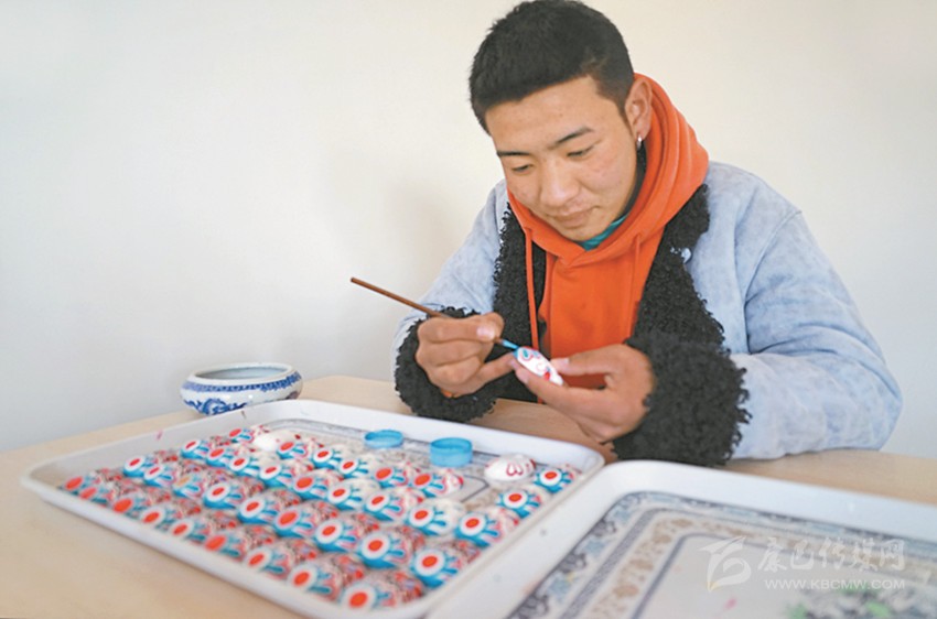 本著自主自愿的原則,教學班結(jié)束后,65名藏族青年主動加入扶貧彩繪實訓班,成為項目的第一批學員?!皩嵱柶陂g不需要交任何費用,還包吃住。我對畫京劇臉譜很有興趣,我們第一個月學習繪畫基本功,第二個月開始,根據(jù)成品質(zhì)量,就可以計件得酬勞,學習期間我每月能掙500多元?!壁雠f。