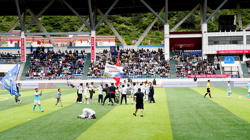 比賽進(jìn)入下半場,雙方一上場便持續(xù)強勁攻勢,比賽至第52分鐘時,甘肅甘南隊成功避開四川阿壩隊再次射門進(jìn)球又得一分,在全場喝彩聲中,甘肅甘南隊全體隊員士氣高漲,乘勝追擊。比賽至65分鐘,甘南隊再進(jìn)一球,比分?jǐn)U大至3:0。此時四川阿壩隊迅速調(diào)整狀態(tài)和戰(zhàn)術(shù),發(fā)起強勢進(jìn)攻,在比賽進(jìn)行至93分鐘時,憑借一個任意球破門得分。比賽得分最終鎖定在3:1,甘肅甘南隊贏得比賽勝利。