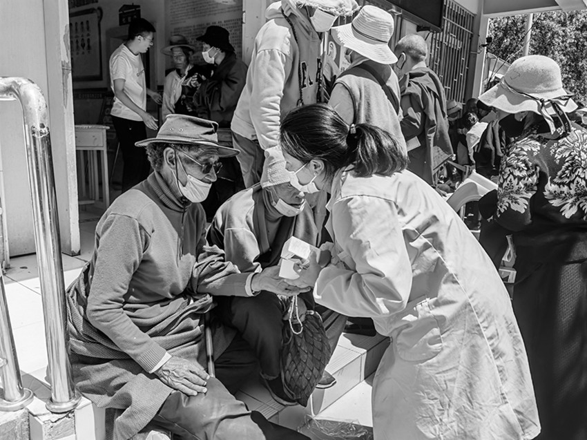 圖為醫(yī)護人員下鄉(xiāng)開展相關預防工作。