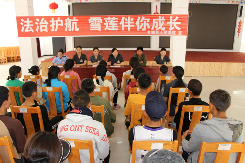 鄉(xiāng)城縣法院“正義雪蓮”女子審判團(tuán)隊(duì)開展送法進(jìn)校園活動(dòng)。