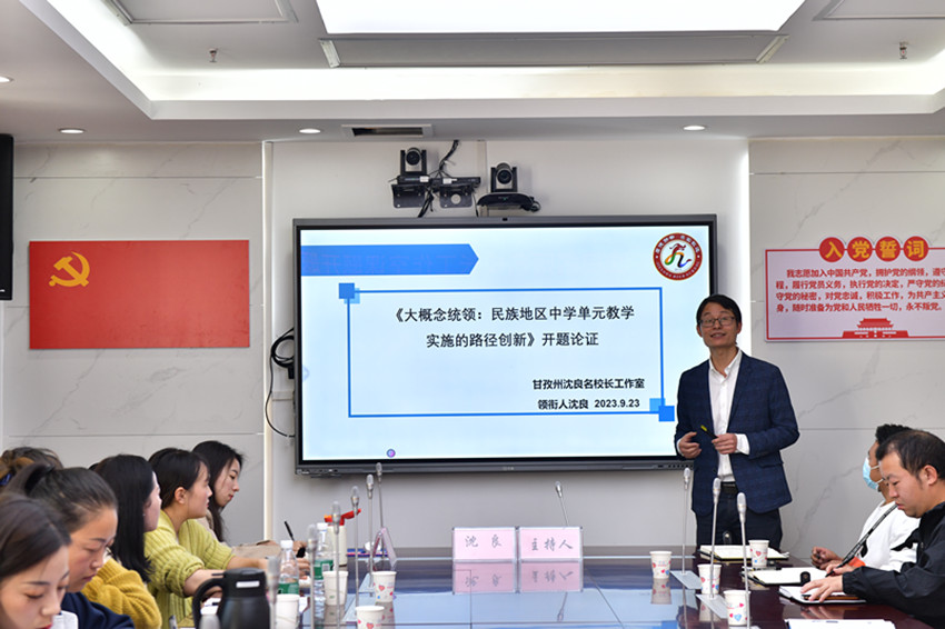 除了以上良策,沈良在擔任我州名校長工作室領銜人時,還注重我州教育事業(yè)的全面均衡發(fā)展?;诠ぷ魇页蓡T有來自九龍、雅江、丹巴、鄉(xiāng)城等地的教育工作者,沈良以州級課題大概念統(tǒng)領:“民族地區(qū)中學單元教學實施的路徑創(chuàng)新”為載體,開展了系列活動探索全州教育教學改革,高效助力全州教育現(xiàn)代化發(fā)展。
