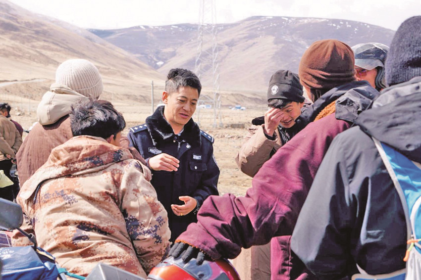 看到派出所民輔警如約而至,這些平日里常到派出所辦事的群眾顯得格外高興,“你又來啦!這次和我們住多久?去年你多多照顧我們了?!薄懊磕晟舷x草山都有你,去年挖蟲草,我?guī)У年笈?,有一頭跑到別人草場去了,是你這個(gè)所長幫忙化解糾紛,還一個(gè)人翻山越嶺把牛給我送回來了,太辛苦你了,卡卓、卡卓(藏語,謝謝的意思)……”陽光下,相互寒暄,深情回味的場景顯得格外溫馨和美,警民臉上的笑容質(zhì)樸、純真,還有甜甜的幸福。
