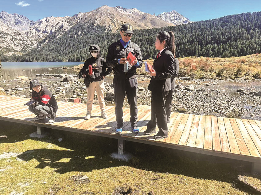 皚皚雪山相伴,莽莽森林環(huán)繞,措普湖猶如一面鏡子靜靜地躺在雪山下。湖邊草地上歡快的人們,或手拉手,跟著弦音學(xué)習(xí)巴塘舞蹈,或手捧一杯藏式奶茶,躺在沙發(fā)上,享受悠閑時(shí)光。