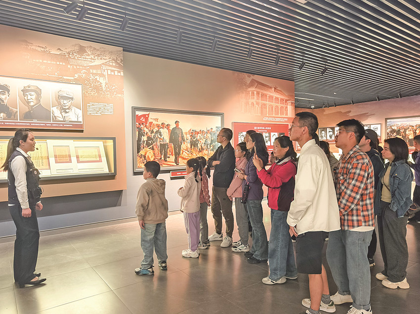 圖為紅軍飛奪瀘定橋紀(jì)念館講解員正在為游客講解。